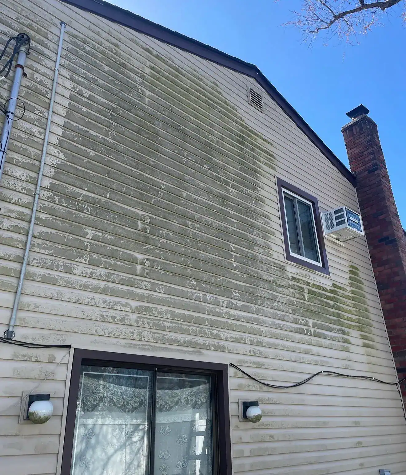 Soft washing uses low pressure and relies on the cleaning solution to do the work, while power washing uses high pressure to physically blast away dirt and grime. For siding—especially vinyl, stucco, or wood—soft washing is the safer and more effective option. High pressure can crack vinyl, force water behind siding panels, strip paint, and damage caulking or seals around windows and doors. Soft washing cleans just as thoroughly without any of those risks. The solution we use breaks down mold, mildew, algae, and dirt at the source, so your siding stays cleaner longer. It’s also gentler on the material itself, which means your siding lasts longer and you avoid costly repairs down the line.